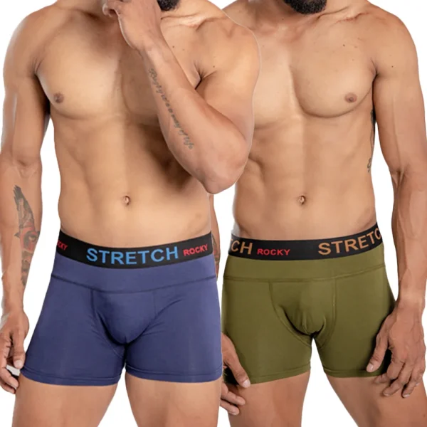 ROCKY Men’s Stretch Boxer (01 – Piece Pack) Assorted The Rocky boxer stretch men’s underwear is made with 95% cotton and 5% spandex. A no-fly construction supports a Spandex fiber rocky stretch underwear design that fits just right. Sporty and premium underwear for men available in an attractive color range